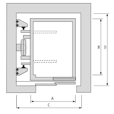 The power pack is placed on the lowest landing on any side of the elevator hoistway. The minimum overhead dimensions required are 3000mm and the pit required is 300mm.