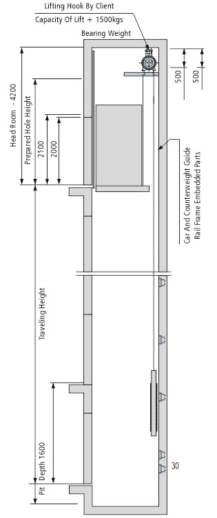 The Machine room-less elevator also referred to as the MRL Elevator can be used if there is no dedicated machine room space available. Machines and governors are located in the hoistway and controllers are located in proximity to the exterior front wall of the hoistway.