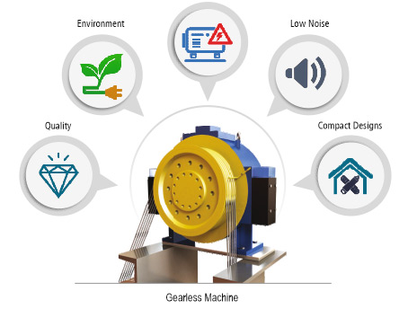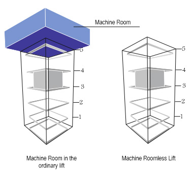 It saves 25% of total elevator equipment area. It reduces 40% of space occupation.